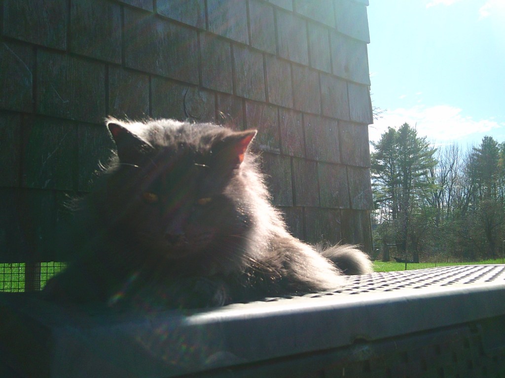 Today, we were supposedly going to leave for New York, (we are driving) but everyone wanted another day until we left so I have had some time to pack and spend time outside because it was really sunny and warm out. I chased my animals around and took pictures of them because I had nothing better to do, my cat actually escaped through the fence and when I went to chase him I had to bend it all the way down so I could get over. I am wearing shorts and a tube top for the first time this year and I’m very happy that’s it’s starting to become warm, maybe after this week it will stay warm, because the highs for this week are pretty low. While chasing my cat I got so many thorns in my leg but it’s honestly fine because I was not about to let my cat get away. Luckily, he did not run further when I caught him and I may or may not have taken some fire photos of him with my digital camera while I was over there. When Bodhi was sitting on this box behind our chicken coop, I was taking pictures of him and when I was reviewing them later, I thought this photo of him was so poetic for some reason, he’s kind of just there in his thoughts and it reminded me of a Lana Del Rey album cover almost. The sun was so bright at this angle and it was pointing directly into my retinas but I needed that photo so I was just hoping and praying that it looked cool and mysterious.